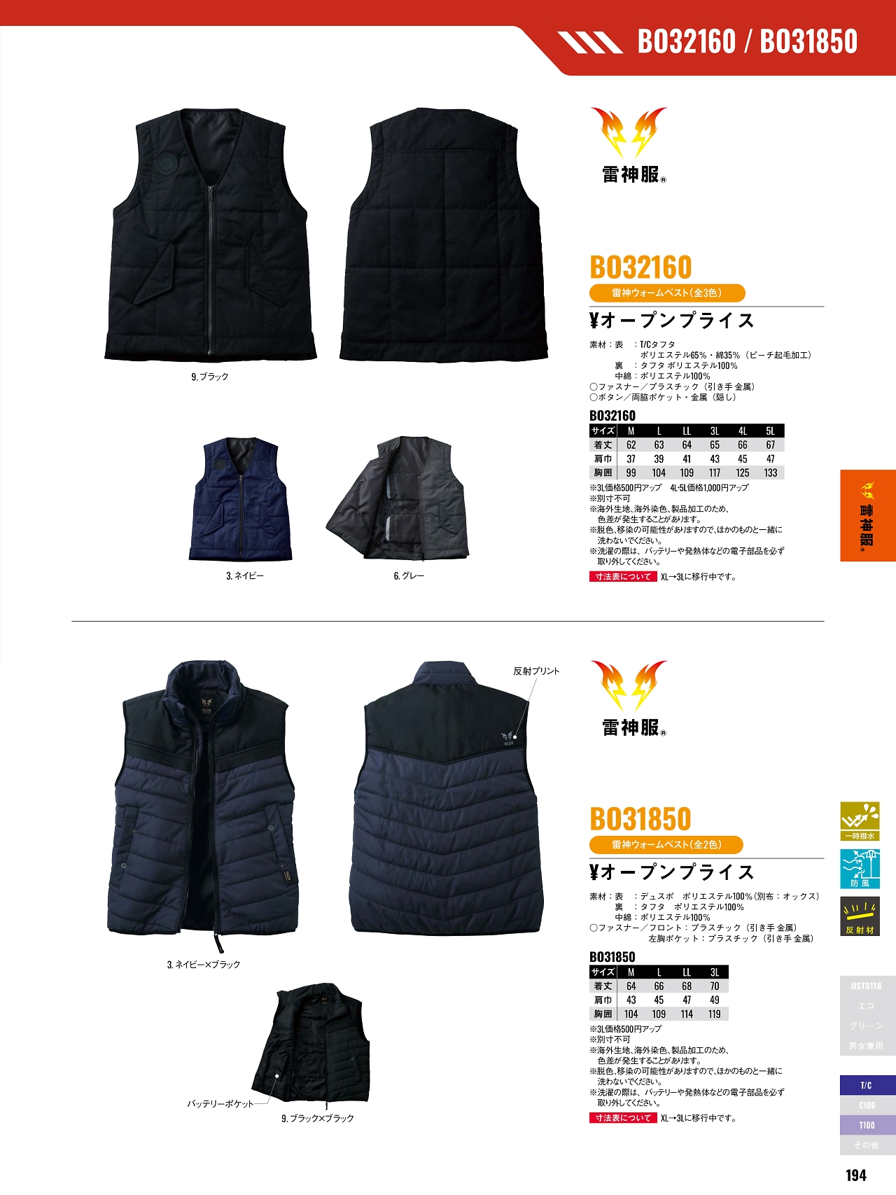 雷神ウォームベスト BO32160