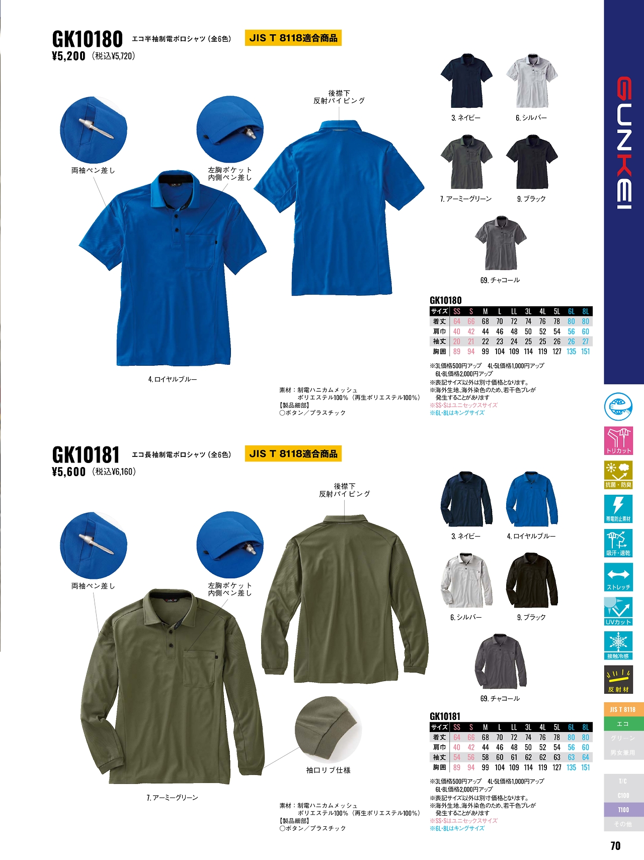 エコ半袖制電ポロシャツ GK10180