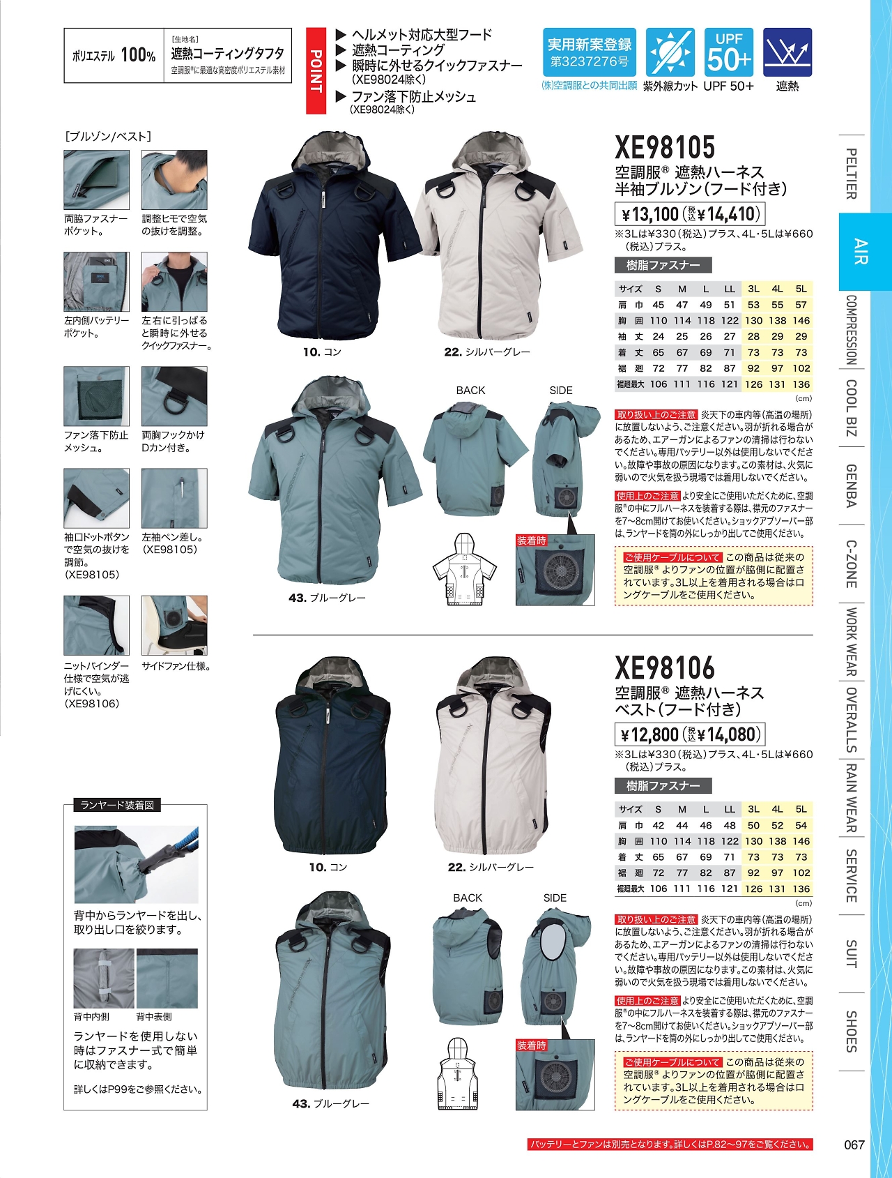 空調服半袖ブルゾン XE98105