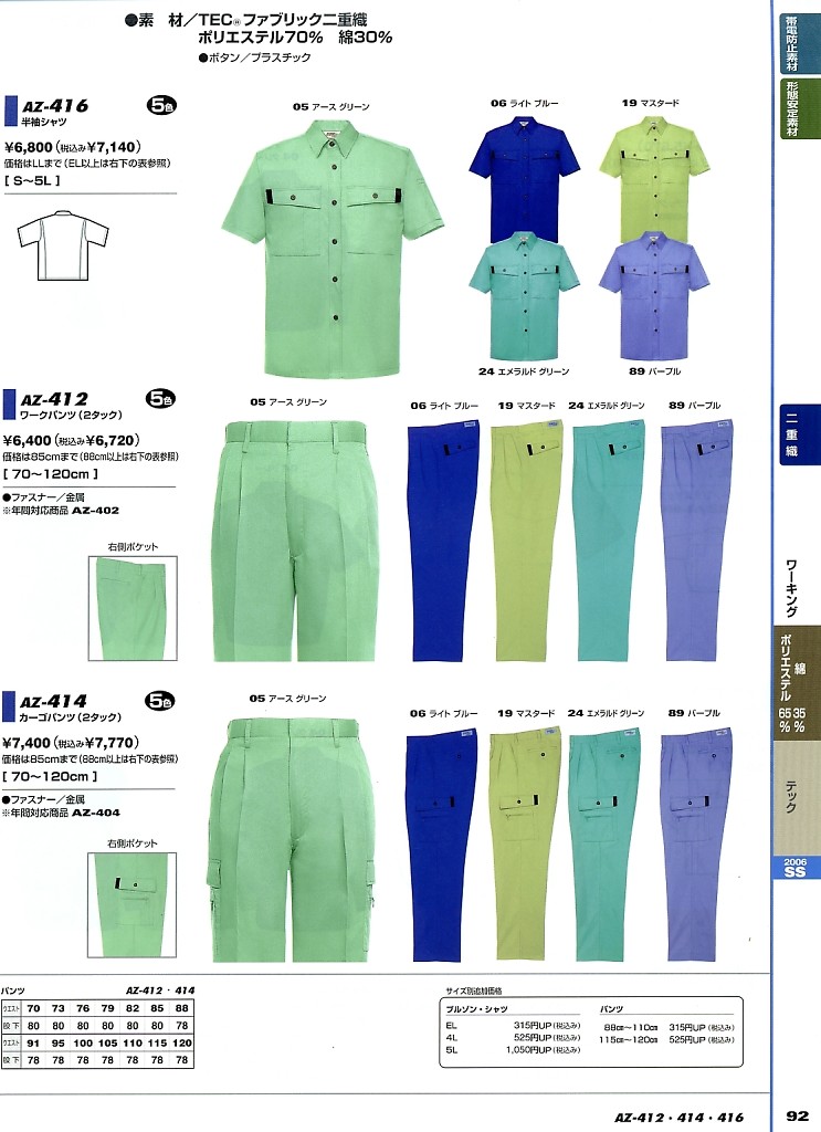 クリックでAZ416 半袖シャツ(在庫限リ)のオンラインカタログのページを表示します