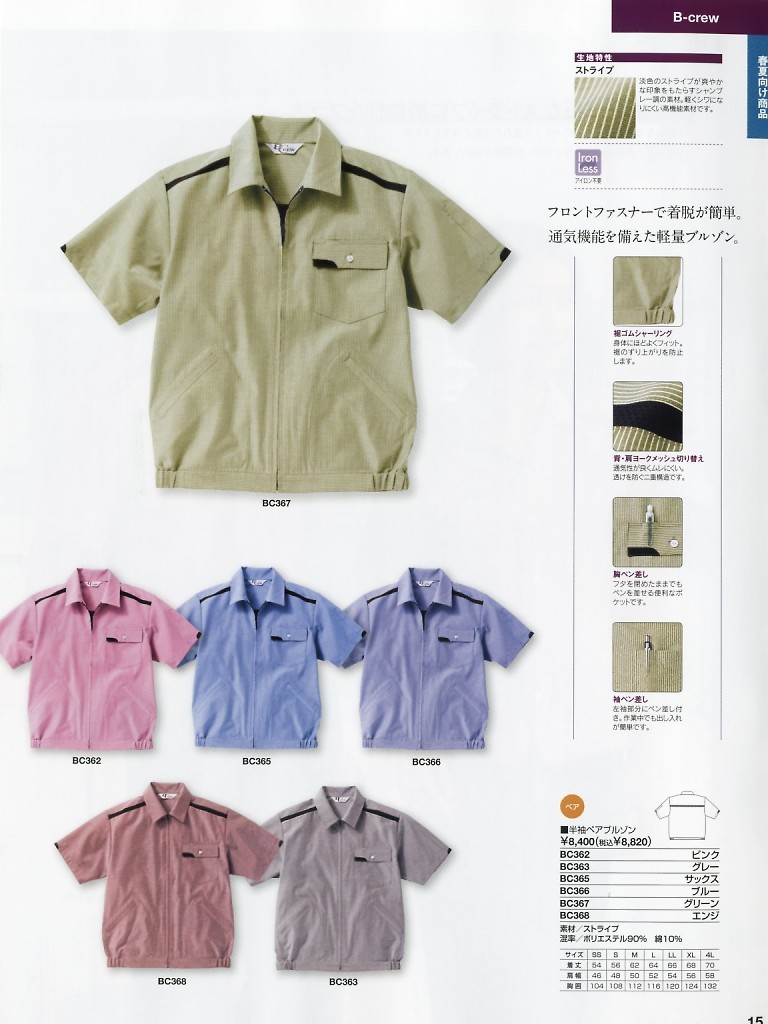 BC362 半袖ペアブルゾン(ピンク)