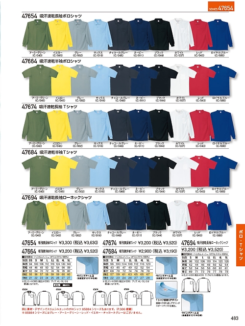 002(グレー)/011(ネイビー)/016(サックス)/037(ホワイト)/040(アーミーグリーン)/043(レッド)/044(ブラック)/045(イエロー)/048(チャコールグレー)/080(ロイヤルブルー)
