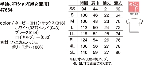 SS/S/M/L/LL/EL(300円UP)/4L(20%UP)/5L(20%UP)