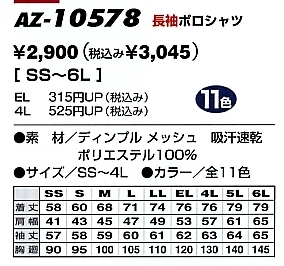 AZ10578 吸汗速乾長袖ポロシャツの最新情報はこちらをクリック。