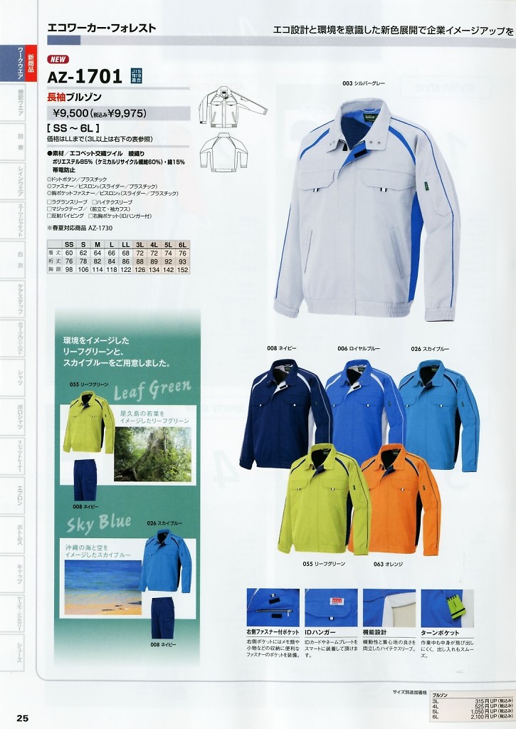 AZ1701 長袖ブルゾンの掲載されているカタログ(左上から順に最新です)