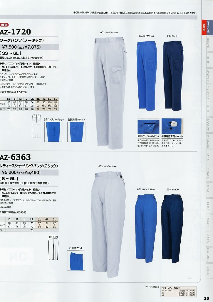 【表紙】このユニフォームの最新カタログ  AZ1720 ワークパンツ(ノータック)のカタログページ(aith2025w092)AZ1720 ワークパンツ(ノータック)のカタログページ(aith2023w036)