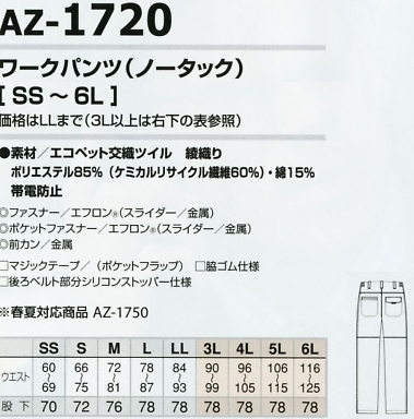 AZ1720 ワークパンツ(ノータック)の最新情報はこちらをクリック。