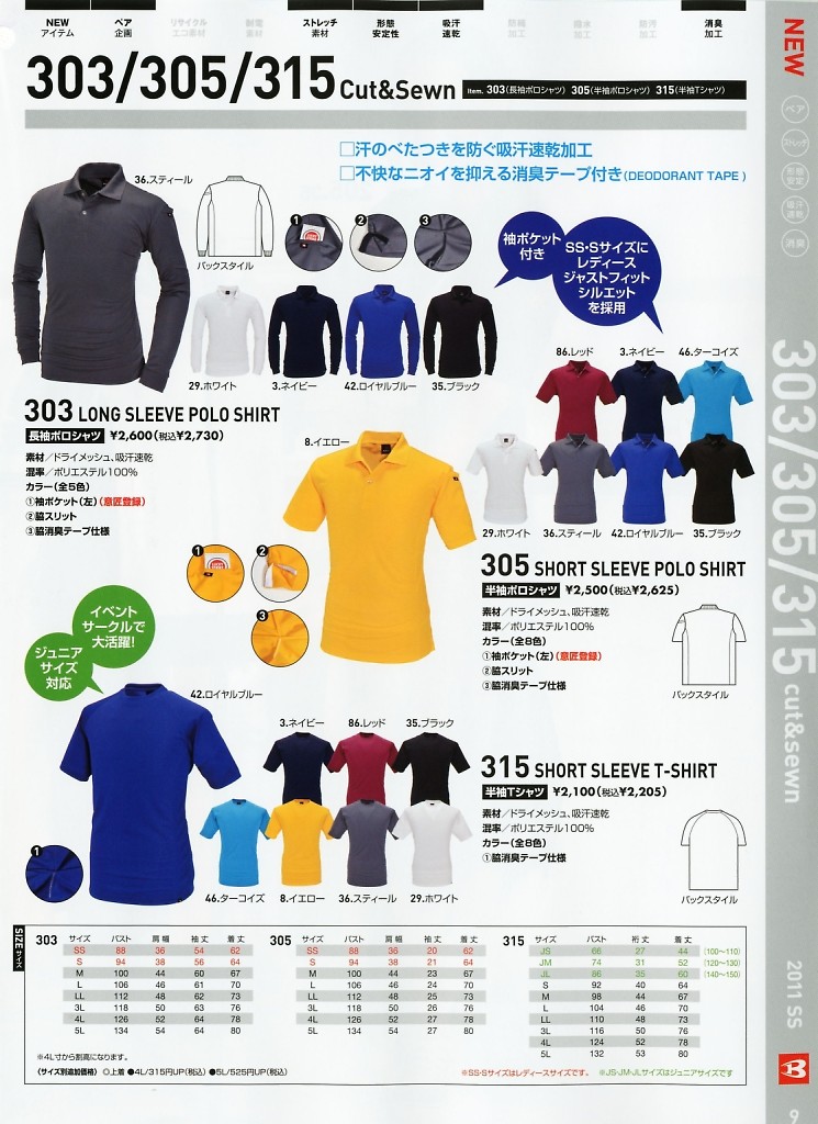 | 305 半袖ポロシャツのサイズ表 |