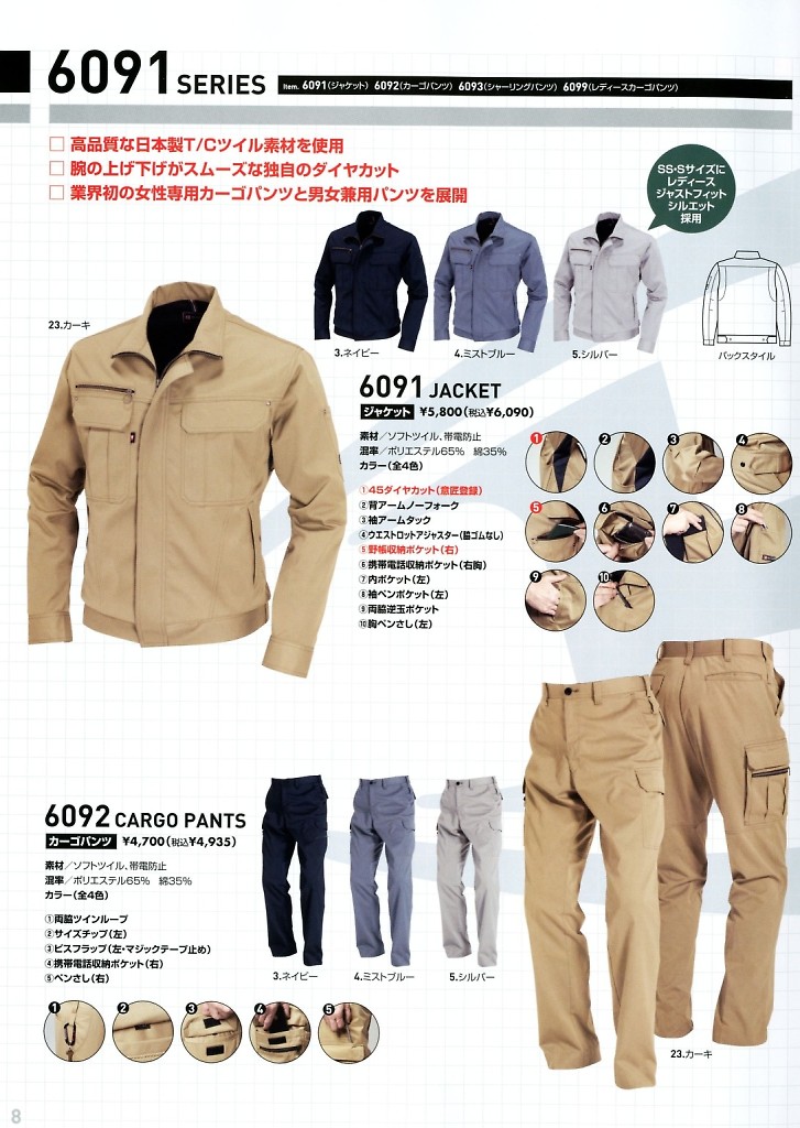 バートル(BURTLE),6092,カーゴパンツの写真は2025-26最新カタログ29ページに掲載されています。