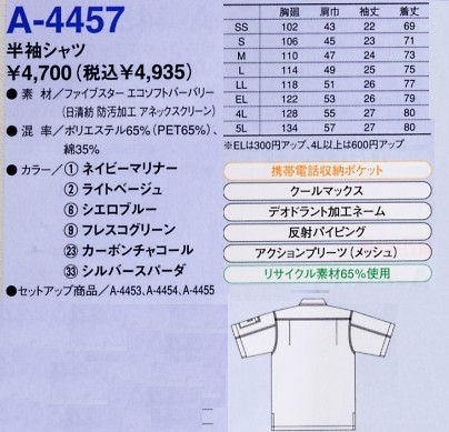 【表紙】このユニフォームの最新カタログ  A4457 半袖シャツのカタログページ(cocc2025s105)A4457 半袖シャツのカタログページ(cocc2022s080)A4457 半袖シャツのカタログページ(cocc2009s037)A4457 半袖シャツのカタログページ(cocc2009s039)