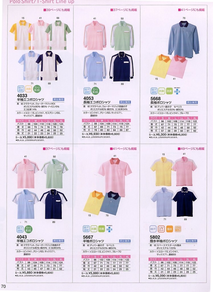 4053 長袖エコポロシャツ(廃番)の掲載されているカタログ(左上から順に最新です)