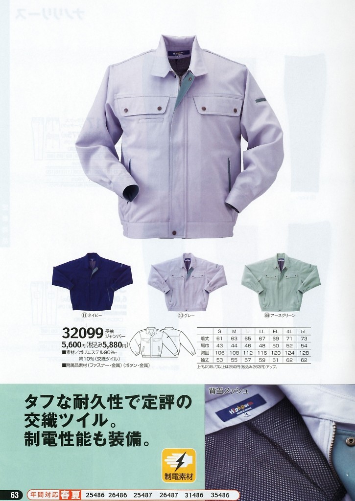 32099 長袖ジャンパーの最新情報はこちらをクリック。
