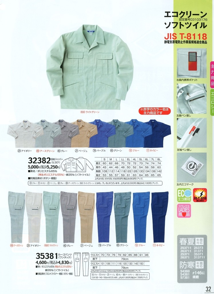 32382 長袖ジャンパー(ヒヨク)の掲載されているカタログ(左上から順に最新です)