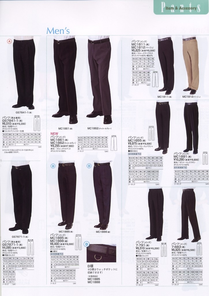 MC1861 パンツ・メンズ(黒)の掲載されているカタログ(左上から順に最新です)