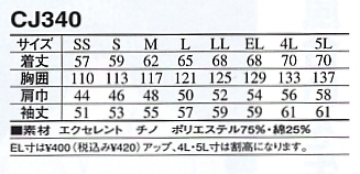 CJ340 ブルゾンのサイズ画像