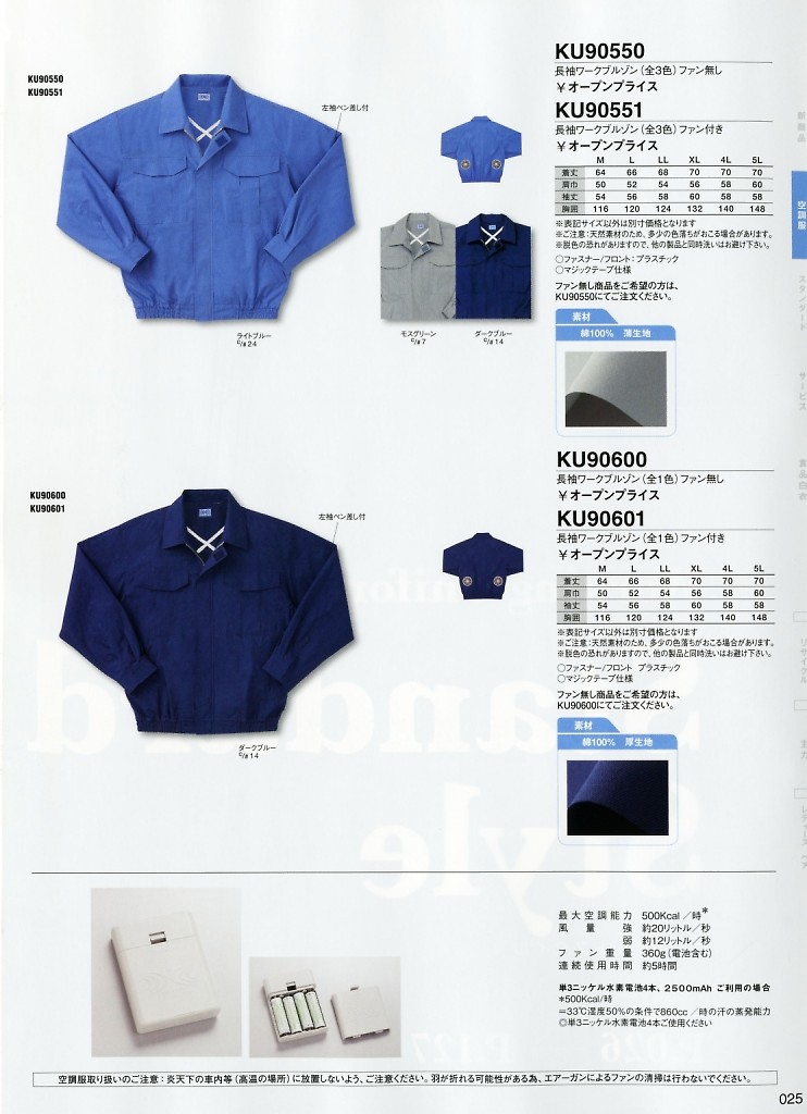 空調服・長袖(ファン無し) |