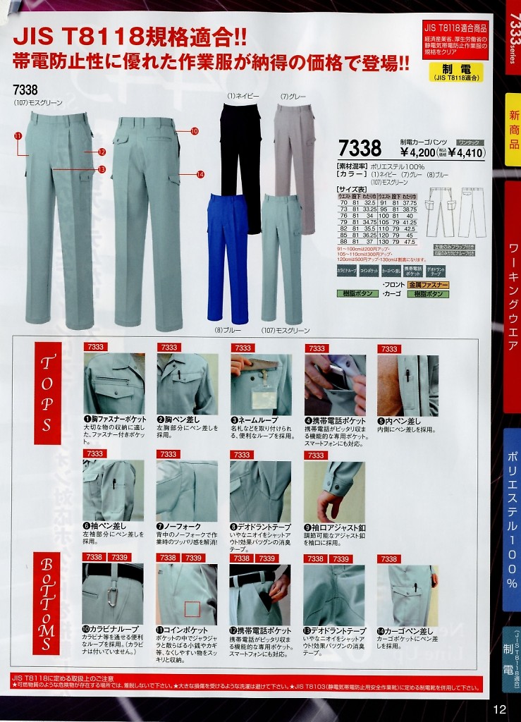 【表紙】このユニフォームの最新カタログ  7338 カーゴパンツのカタログページ(suws2024w281)7338 カーゴパンツのカタログページ(suws2021w120)7338 カーゴパンツのカタログページ(suws2013w012)