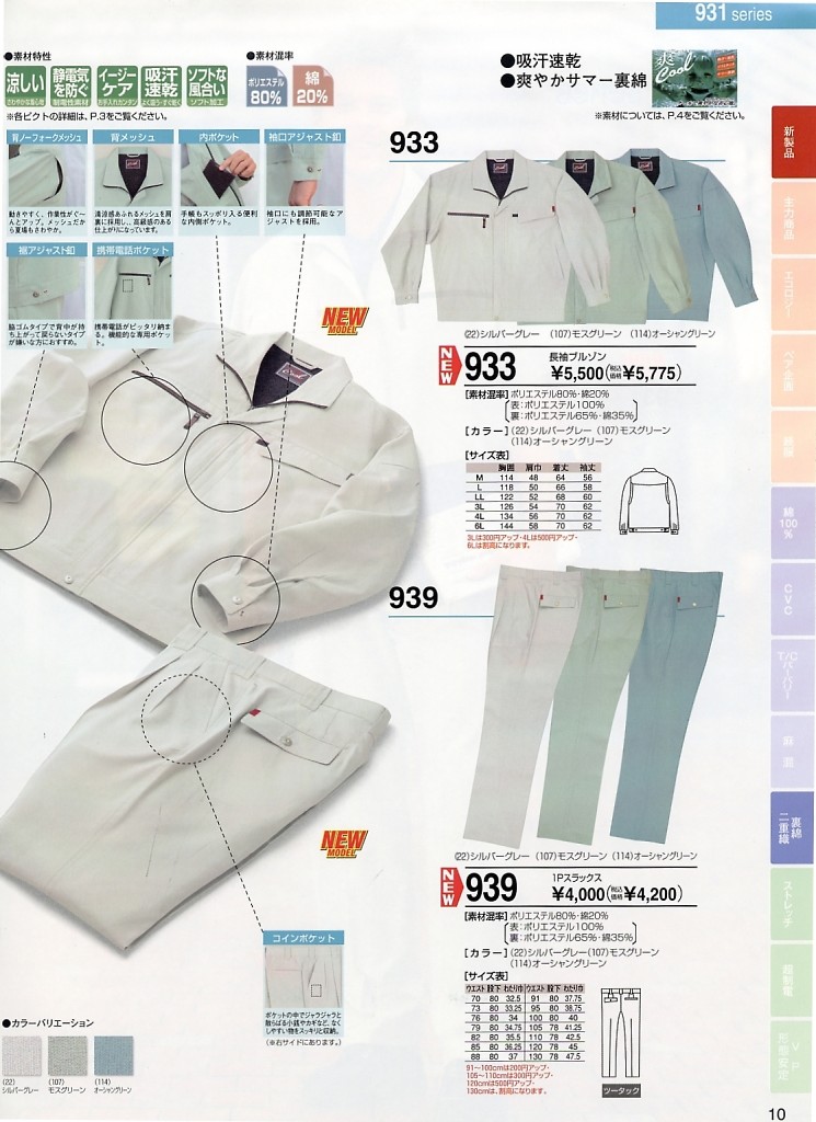 933 長袖ジャンパーの掲載されているカタログ(左上から順に最新です)