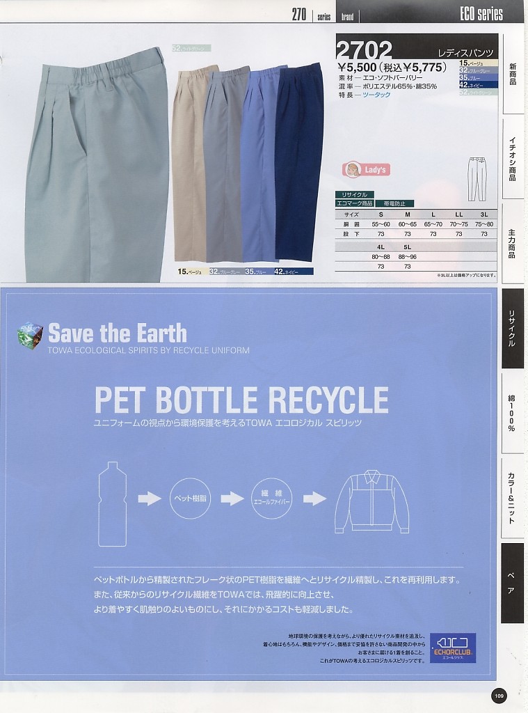 | 2702 レディースパンツ(春夏対応)の最新情報はこちらをクリック。 |