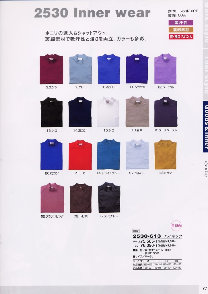 | 2530-613-3L ハイネック(3L)の最新情報はこちらをクリック。 |