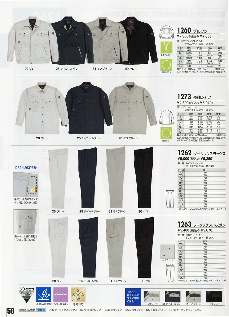XEBEC ジーベック,1262,スラックスの写真は2024-25最新カタログ103ページに掲載されています。