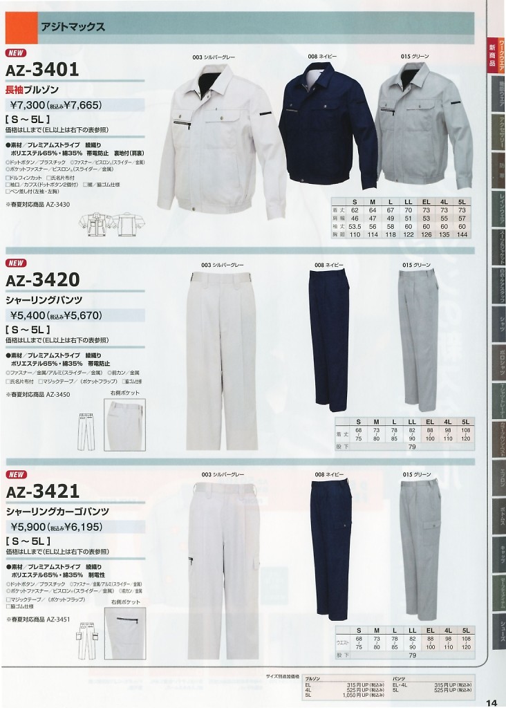 【表紙】このユニフォームの最新カタログ  AZ3401 長袖ブルゾンのカタログページ(aith2025w119)AZ3401 長袖ブルゾンのカタログページ(aith2023w106)