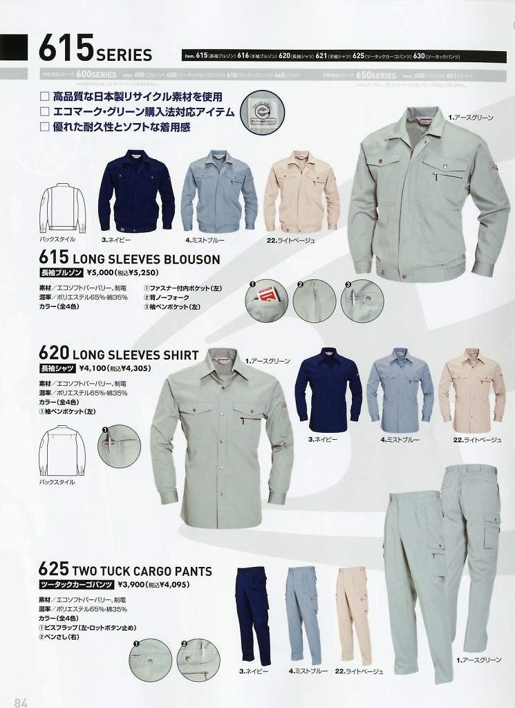 【表紙】このユニフォームの最新カタログ  625 ツータックカーゴパンツのカタログページ(burw2025s035)625 ツータックカーゴパンツのカタログページ(burw2023s037)
