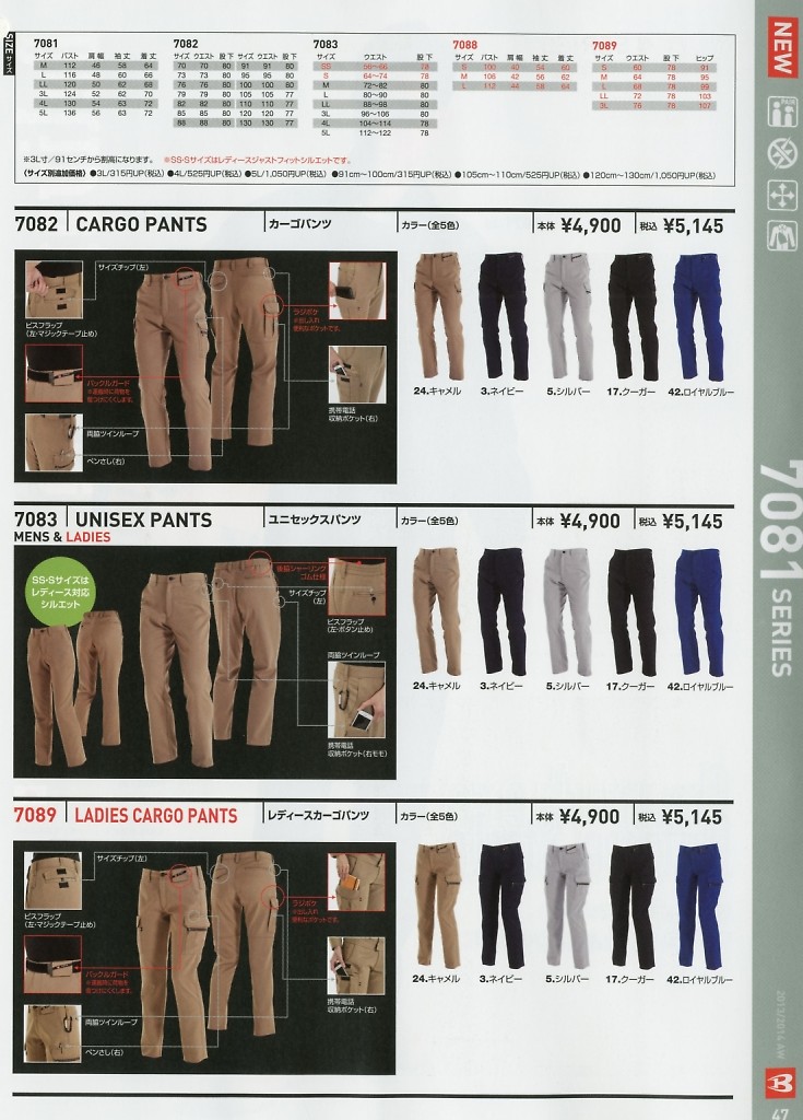 バートル(BURTLE),7089,レディースカーゴパンツの写真は2025-26最新カタログ51ページに掲載されています。