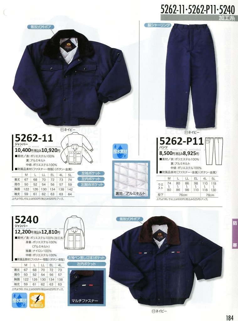 | 5262-P11 パンツ(防寒)14廃番の最新情報はこちらをクリック。 |