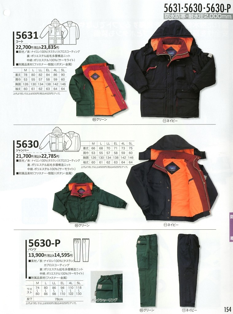 【表紙】このユニフォームの最新カタログ  5630P パンツ(防水防寒)のカタログページ(kurk2009w163)