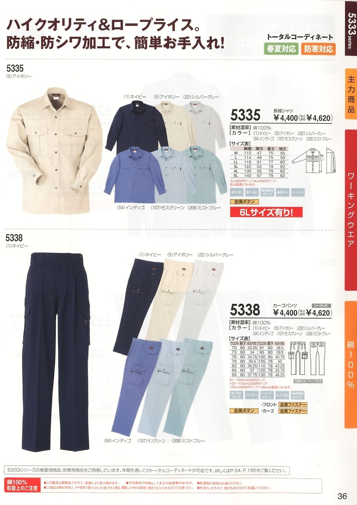 SOWA(桑和),5335,長袖シャツの写真は2024-25最新カタログ124ページに掲載されています。