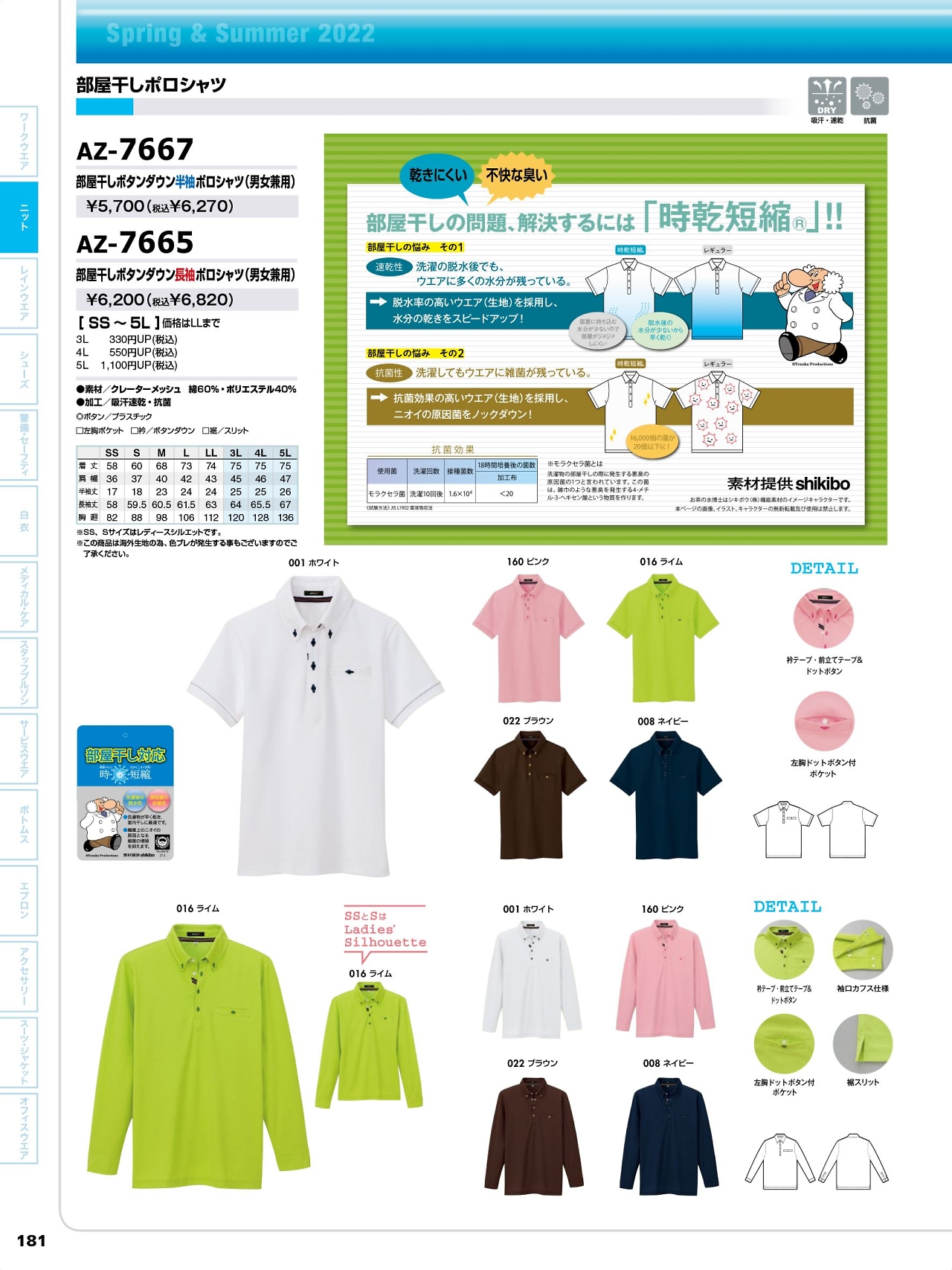 部屋干しBD半袖ポロシャツ AZ7667