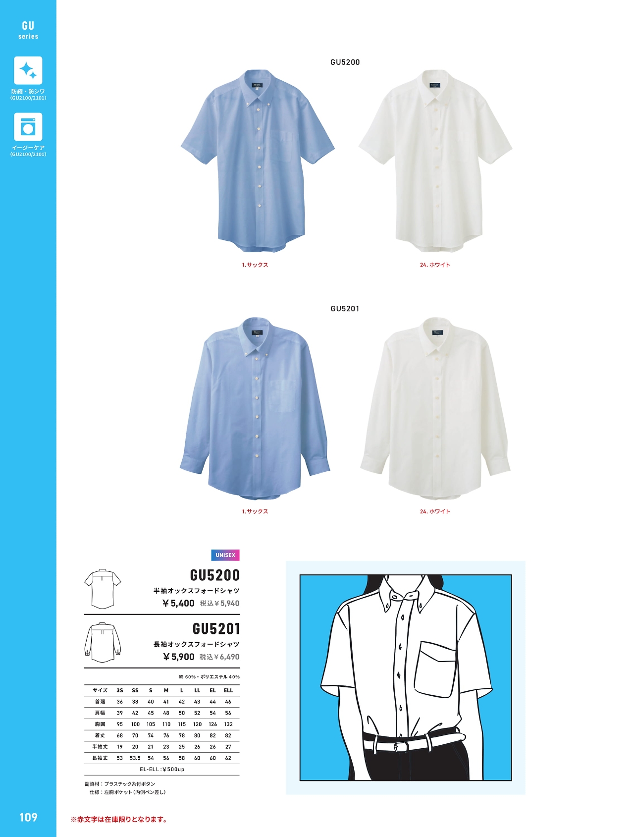 長袖オックスフォードシャツ GU5201