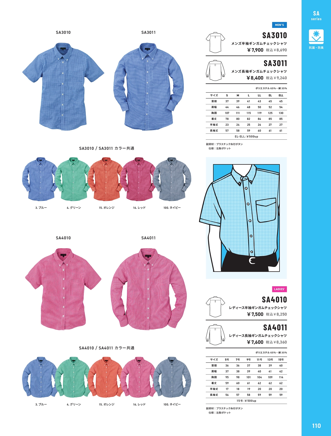 半袖メンズギンガムシャツ SA3010
