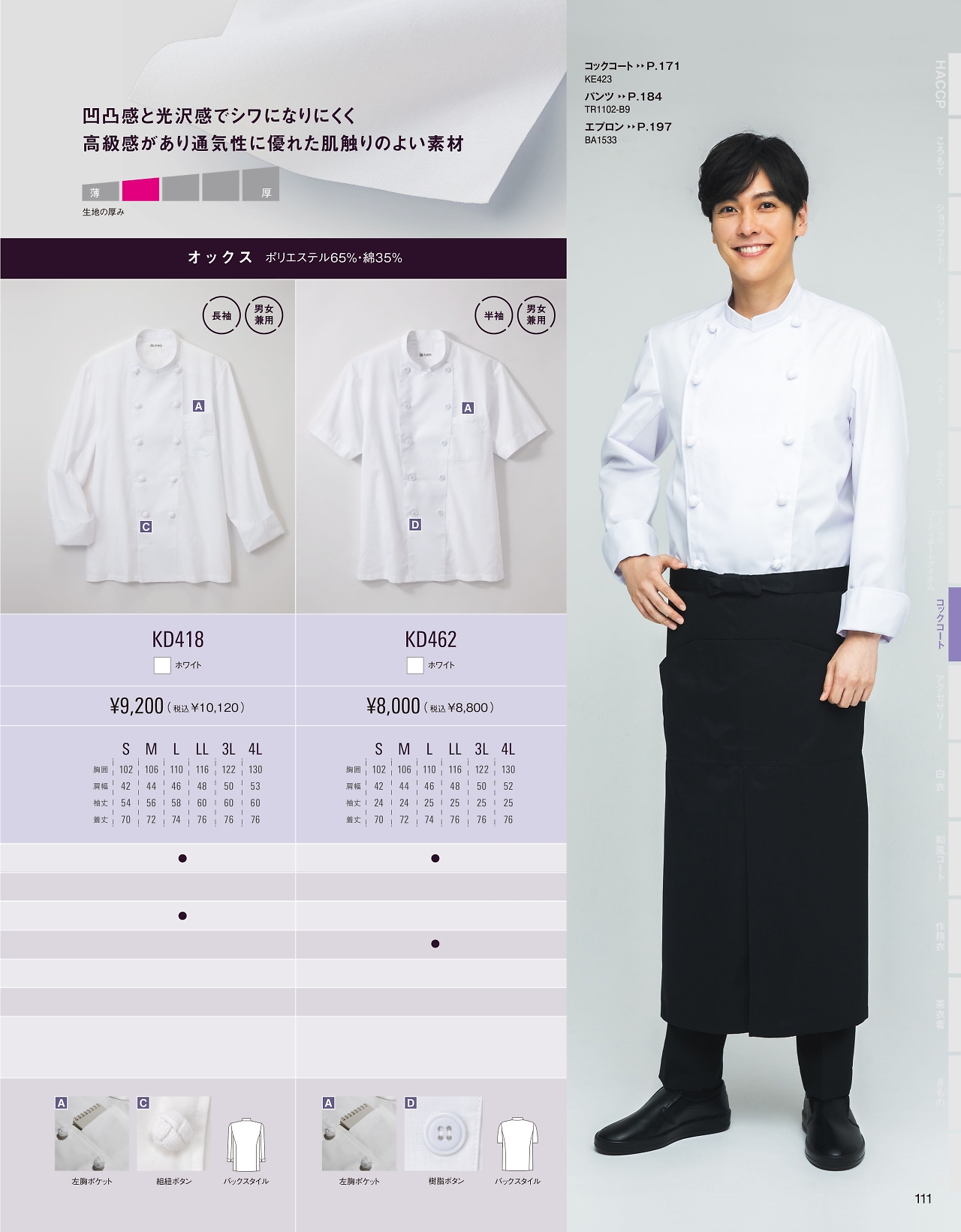 半袖コックコート KD462