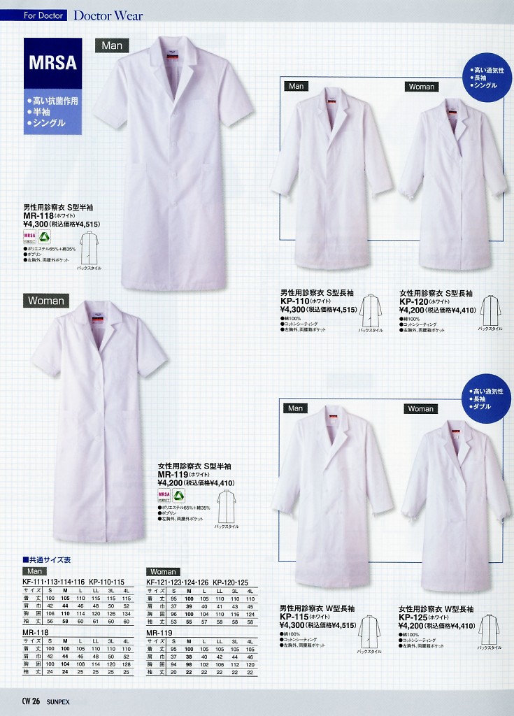 男性用検査衣半袖ホワイト MR118
