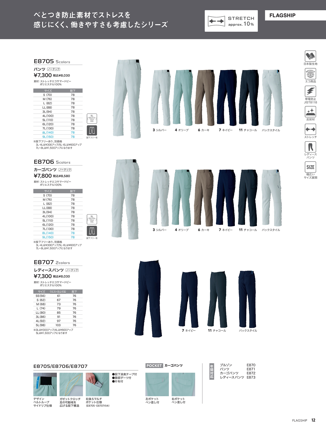 ノータックカーゴパンツ E8706