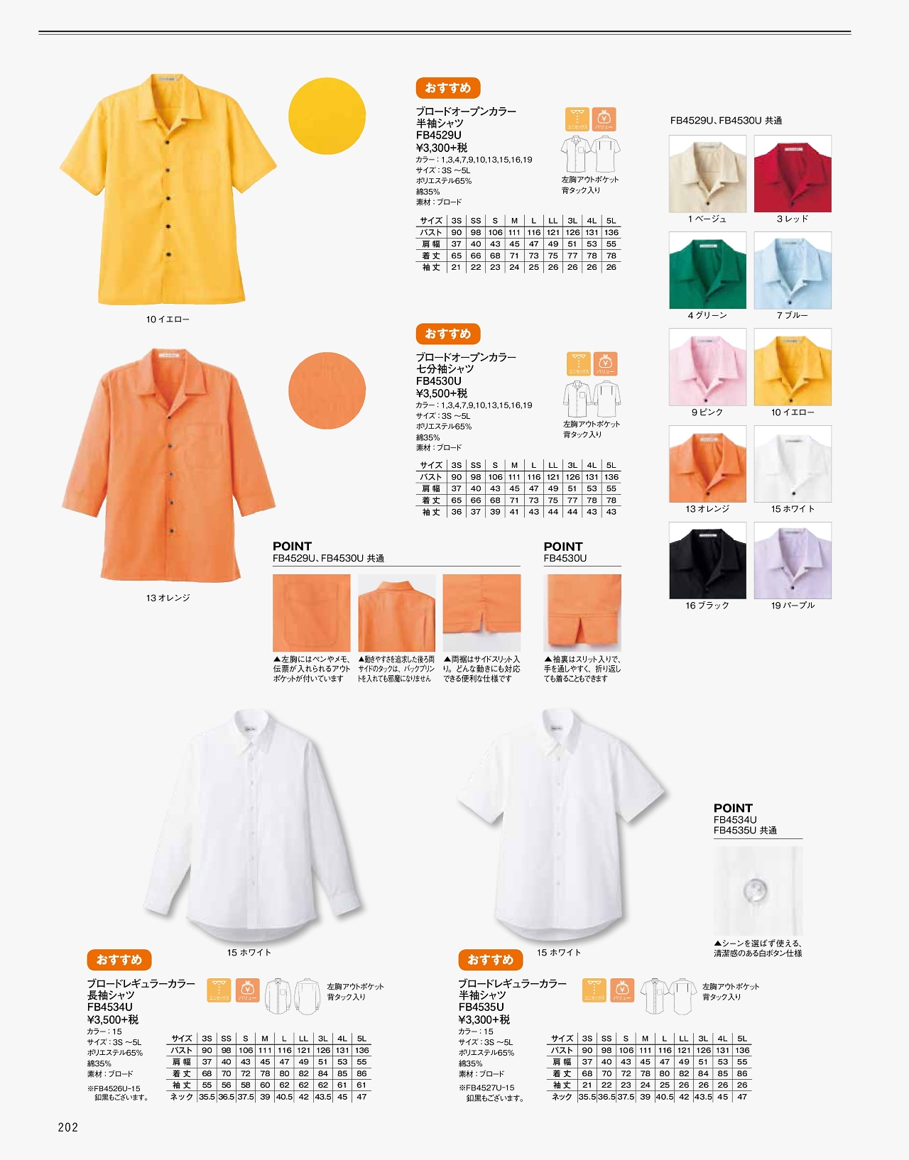 ブロードレギュラーカラー半袖シャツ FB4535U