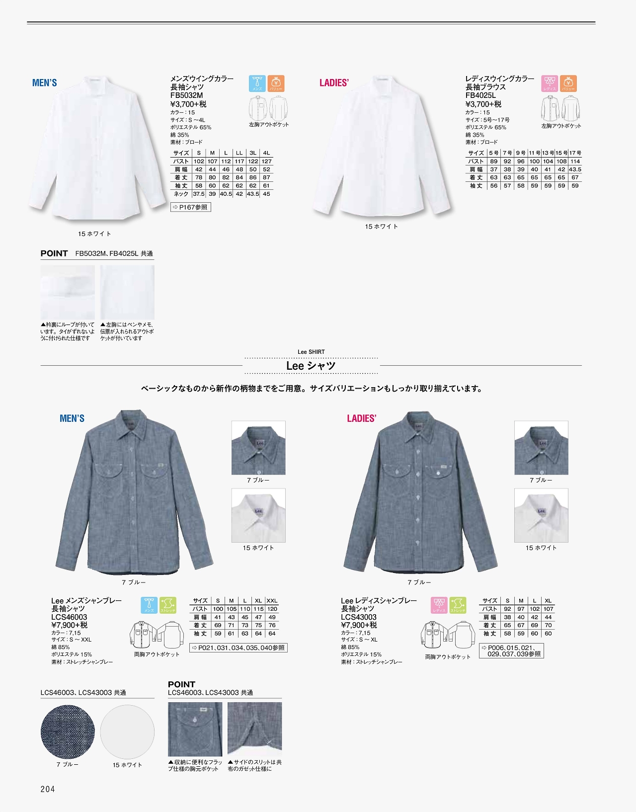メンズウイングカラー長袖シャツ FB5032M