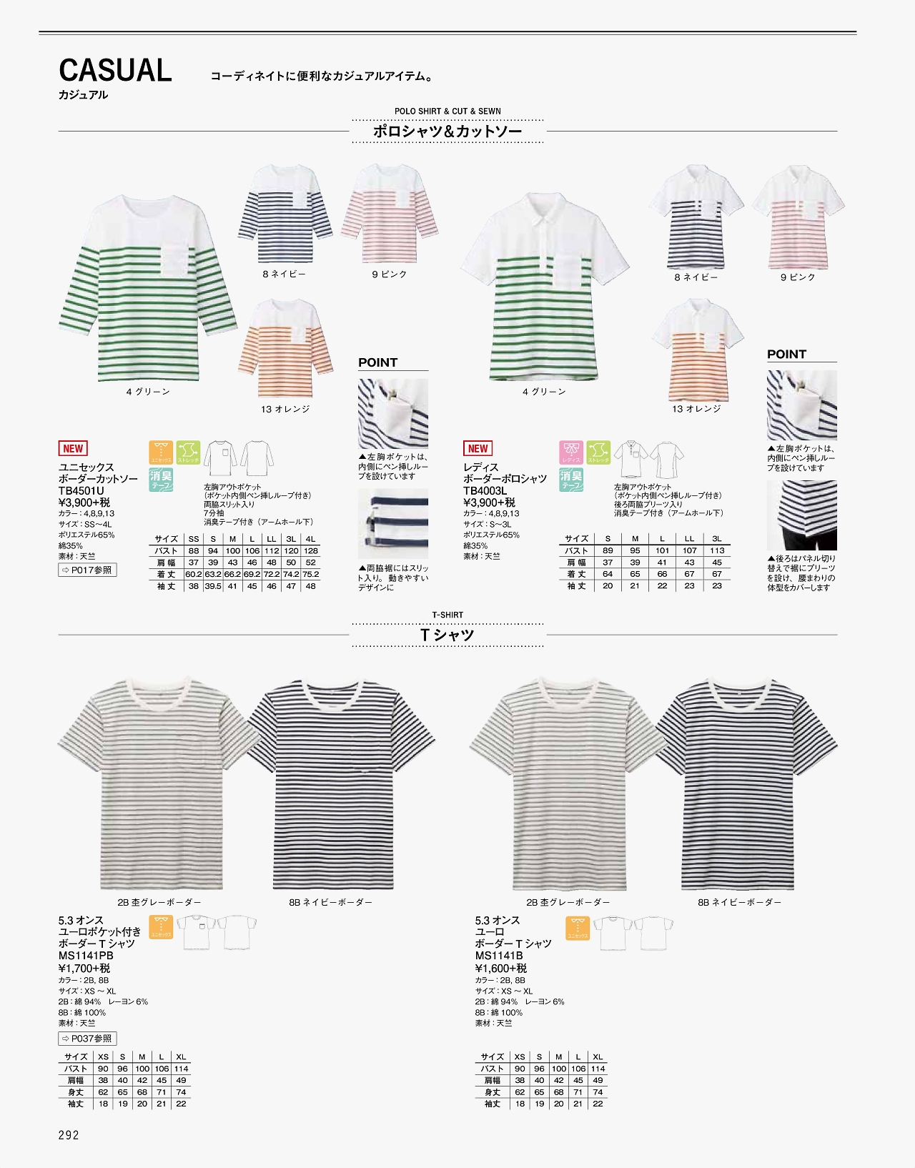 ユニセックスボーダーカットソー TB4501U