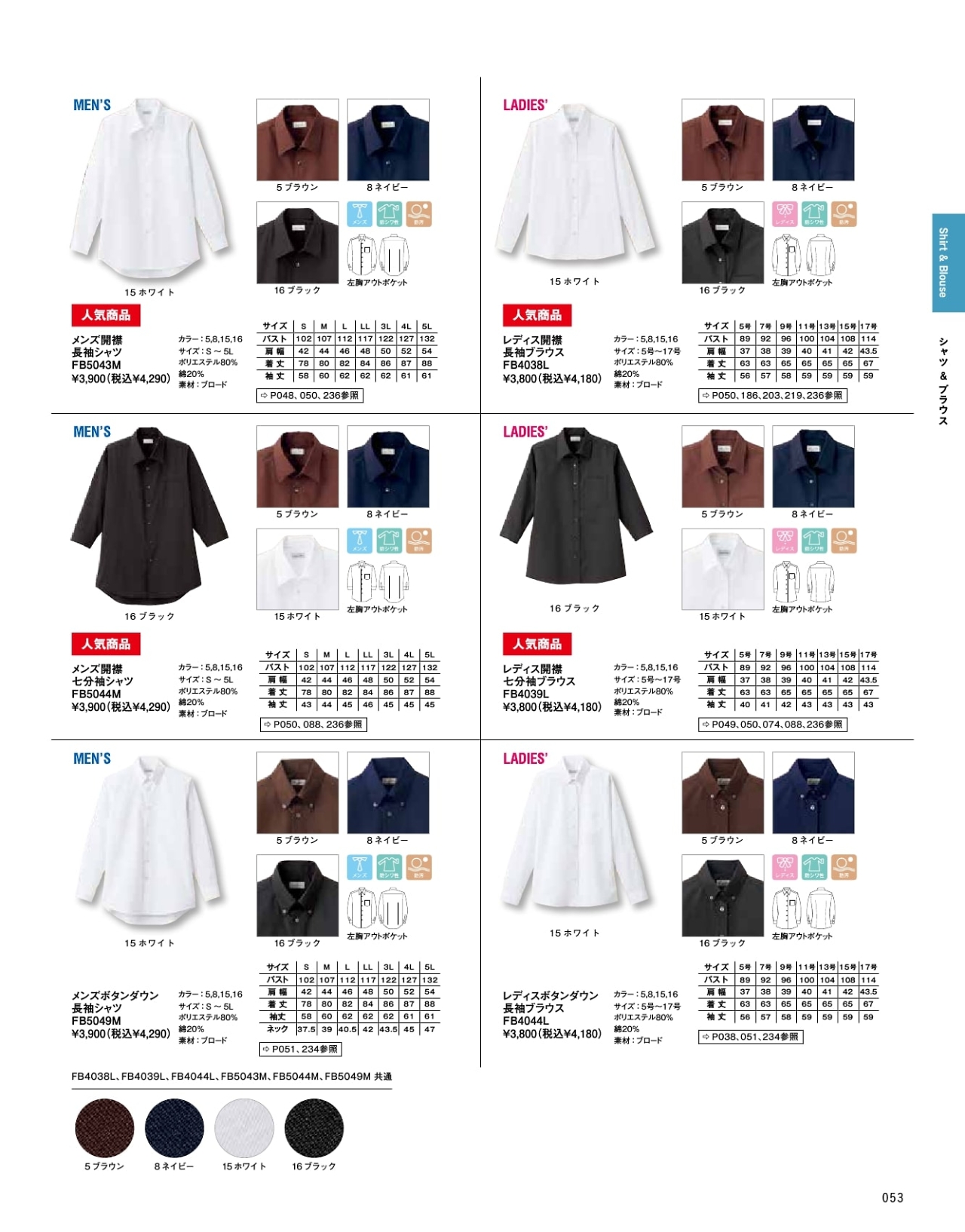 開襟長袖シャツ FB5043M