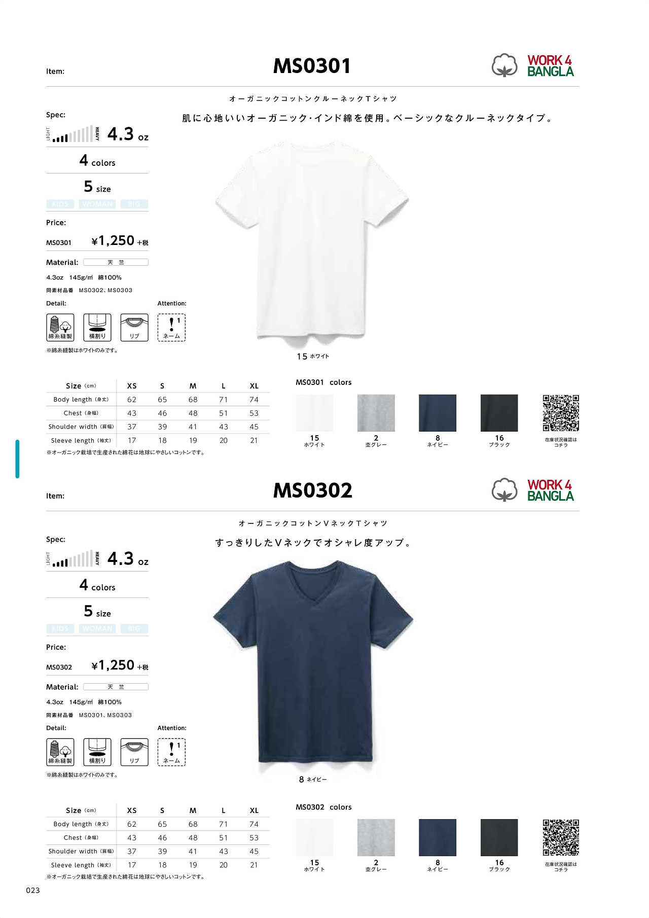 オーガニックコットンTシャツ MS0301