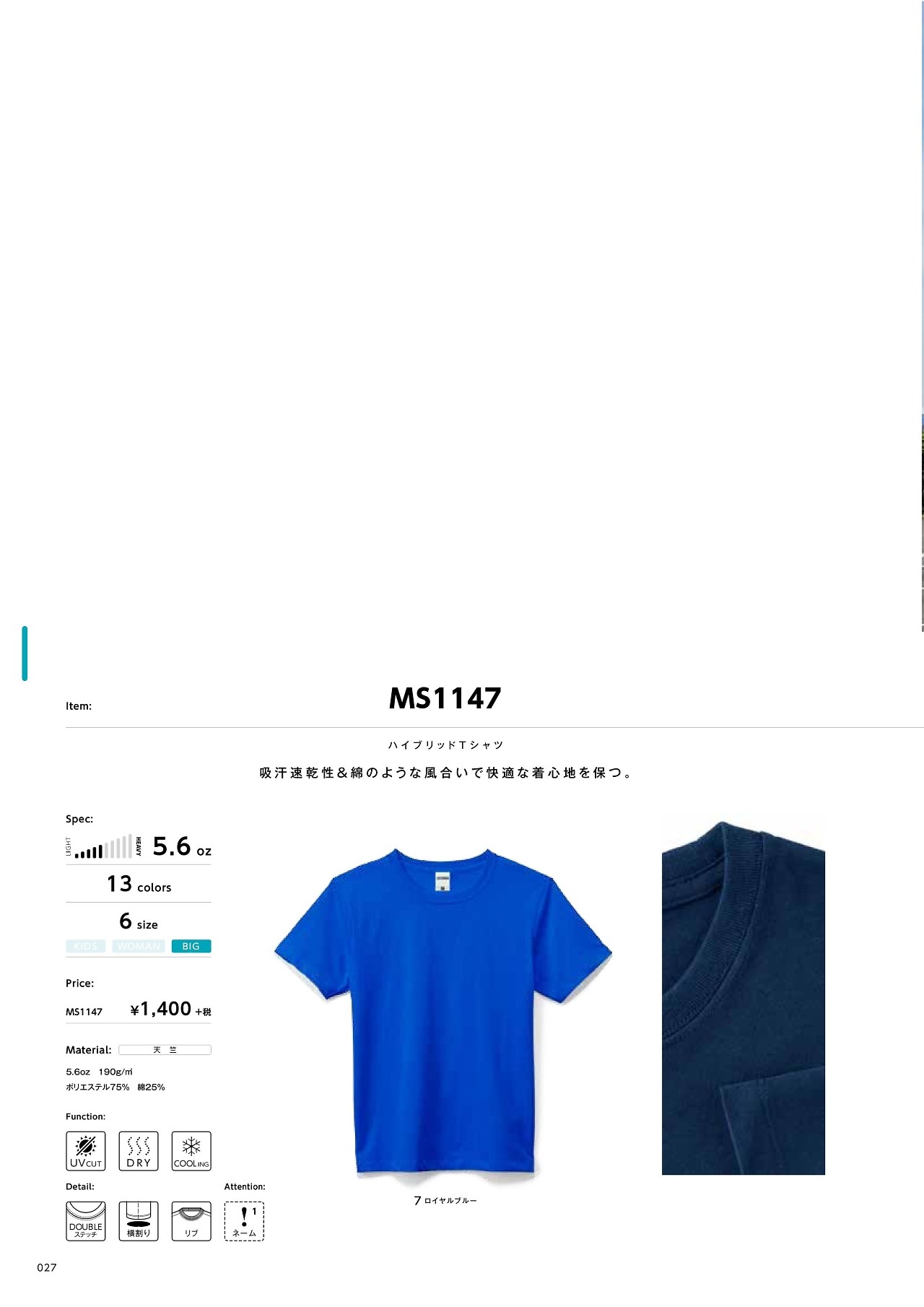 ハイブリットTシャツ MS1147
