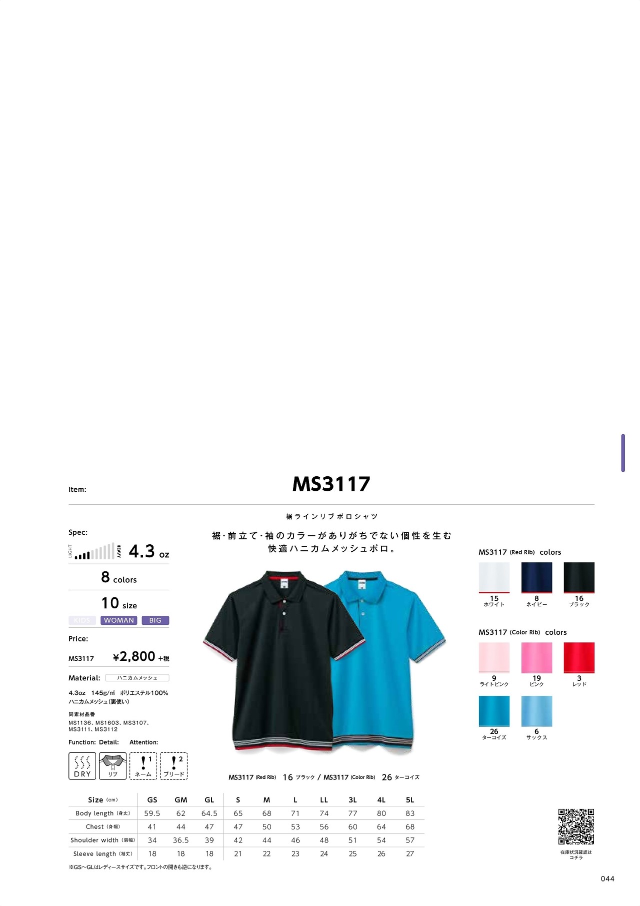 ユニフォーム MS3117