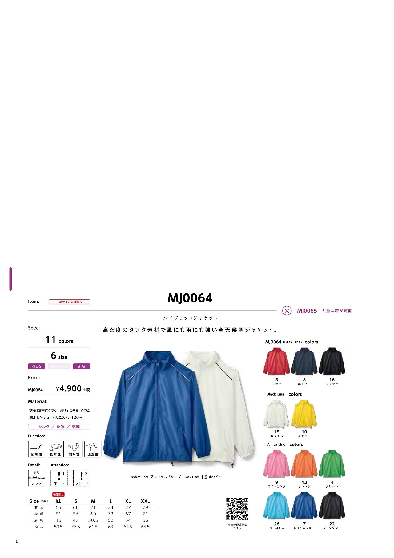 ハイブリッドジャケット MJ0064