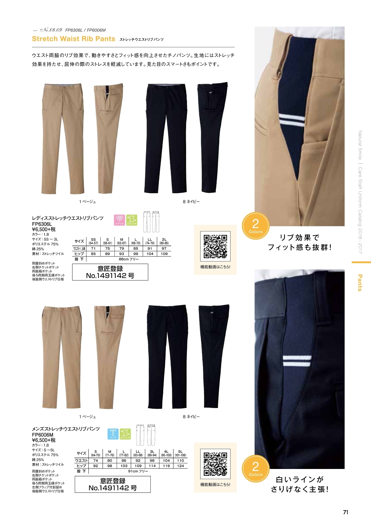 レディースストレッチリブパンツ
