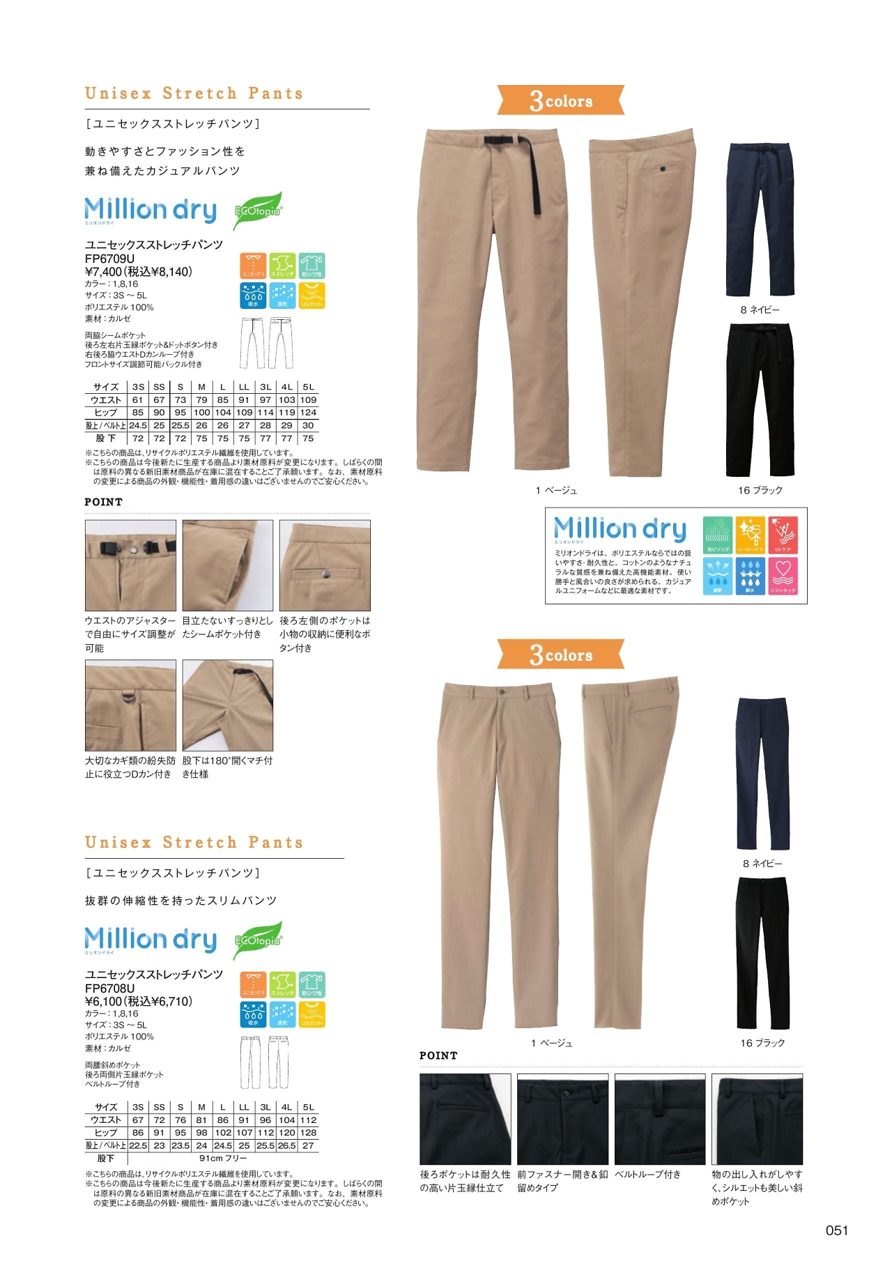 ユニセックスストレッチパンツ FP6709U