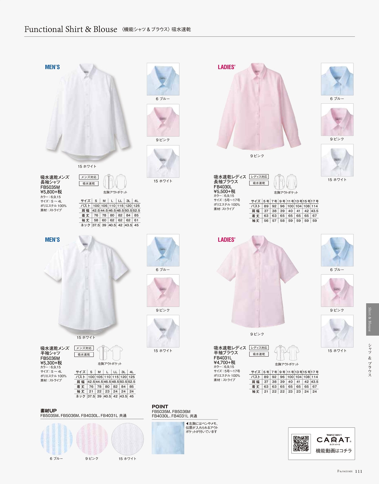 吸汗速乾半袖ブラウス FB4031L