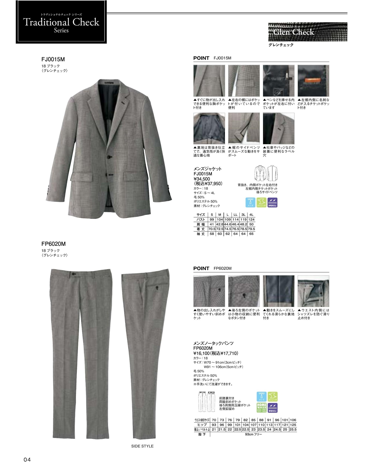 メンズノータックストレッチパンツ FP6020M