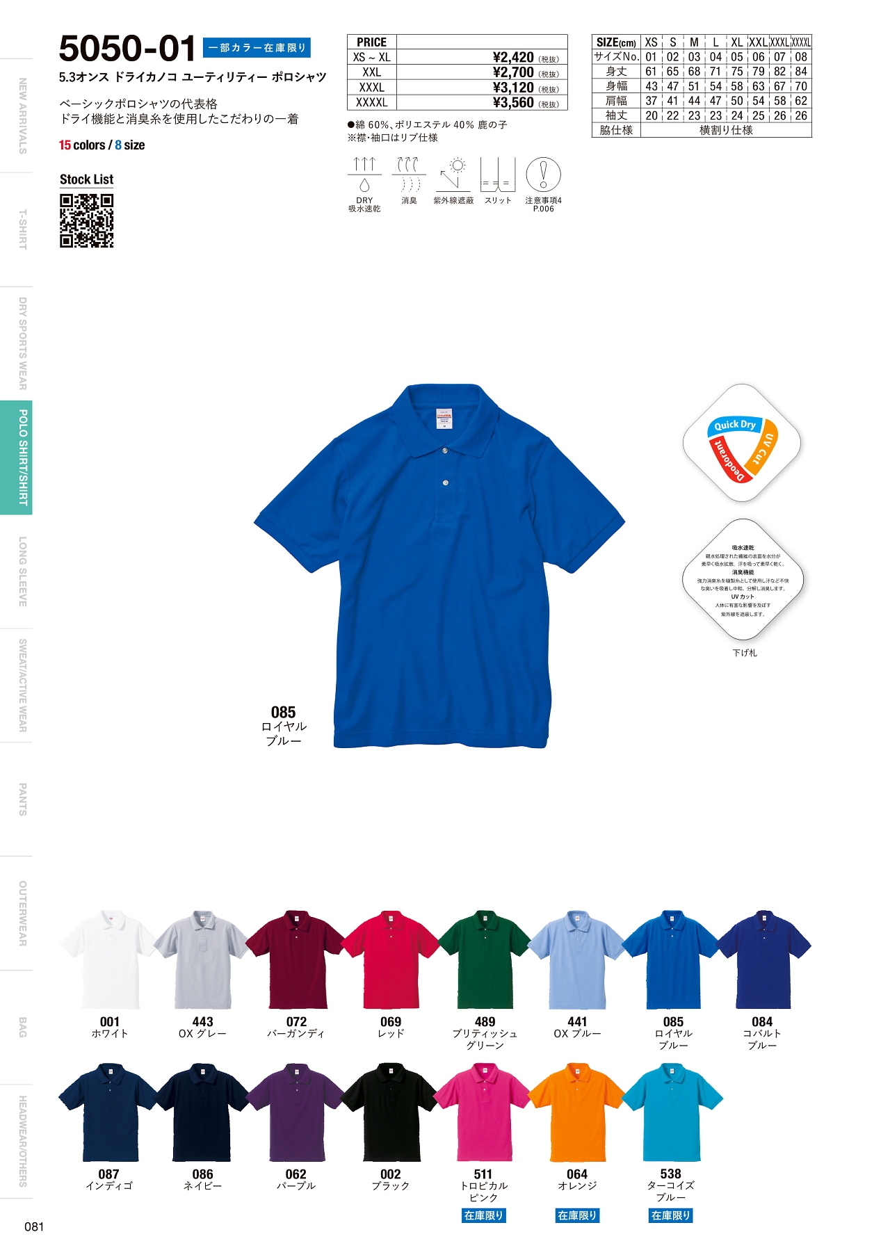 5.3オンスドライカノコユーティリティーポロシャツ 5050-01